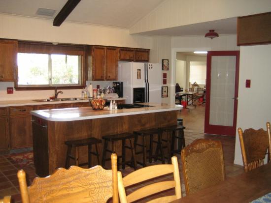 The spacious kitchen is fully equipped and stocked with all the necessities for you to enjoy cooking with friends. It has a microwave, 2 coffee makers, toaster, full sized refrigerator and oven, and all necessary cooking supplies. Coffee and tea are provided, as well as water. The dining table seats 12 with a panoramic view of the backyard while you relax with a great meal. There are several grocery stores nearby, as well as restaurants.
